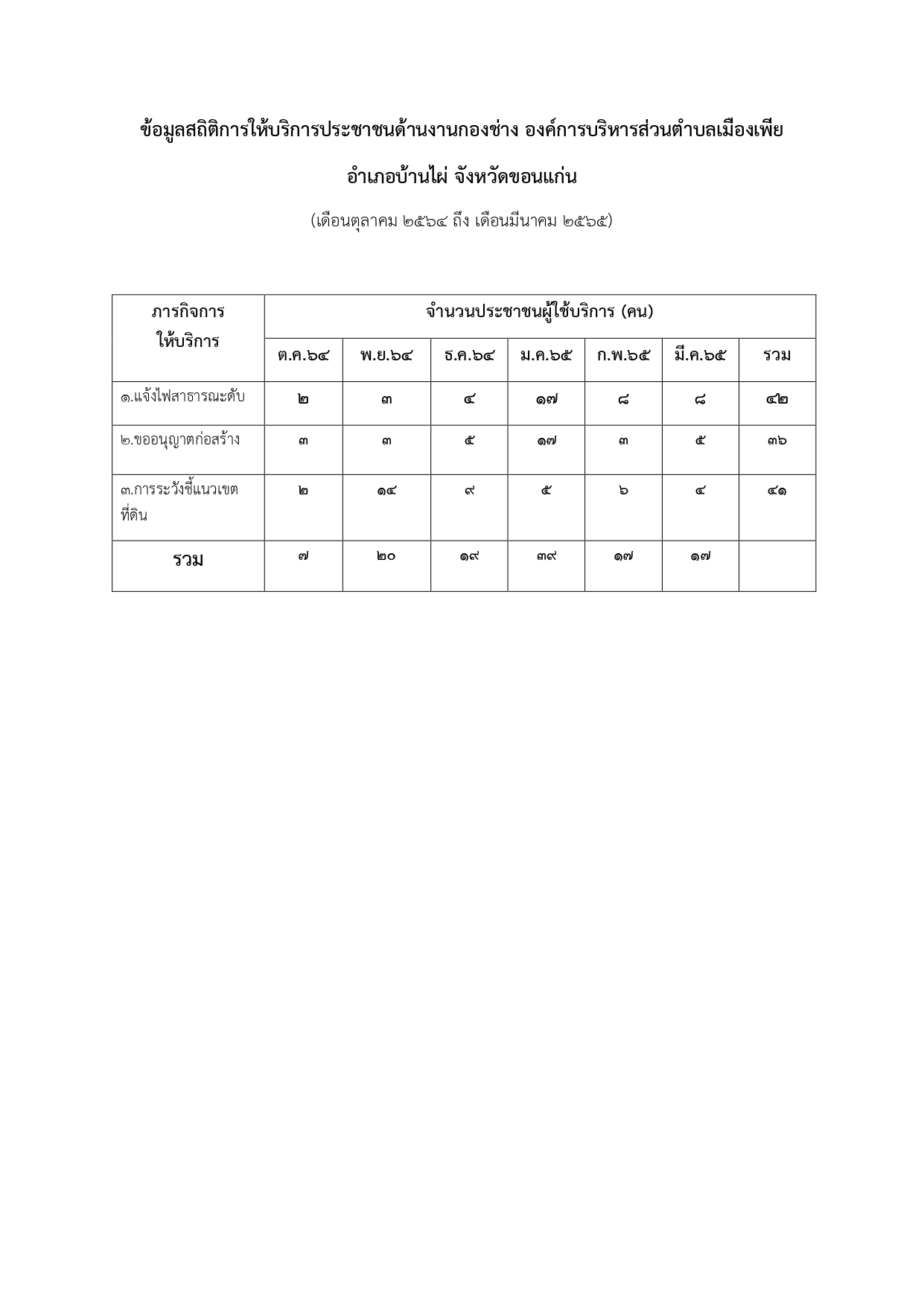 ข้อมูลสถิติการให้บริการงานด้านกองช่าง |